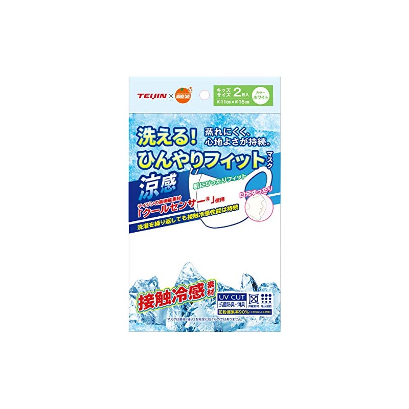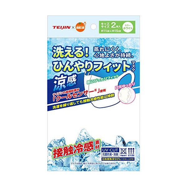 オレンジケア 洗える ひんやりマスク 白 2枚入/パック キッズ