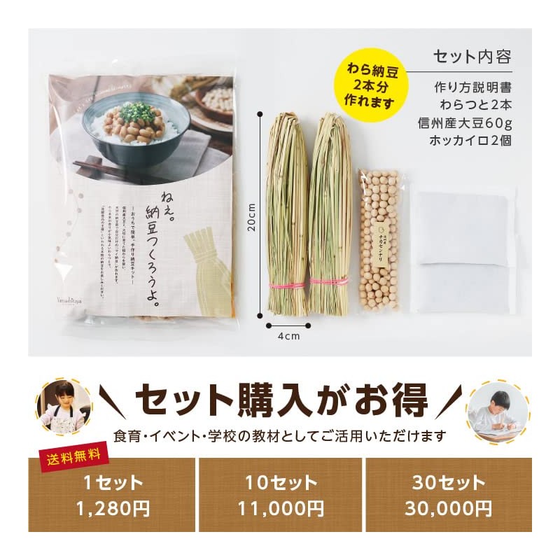 山下屋荘介 手作り納豆キット ねぇ。納豆つくろうよ。 (2本入り / 長野県産) 大豆 納豆 (プレゼント/手土産) 納豆菌 (手作りキット/わら納豆) 手作り おうち時間 夏休み 自由研究 食育 (ギフト/プレゼント)