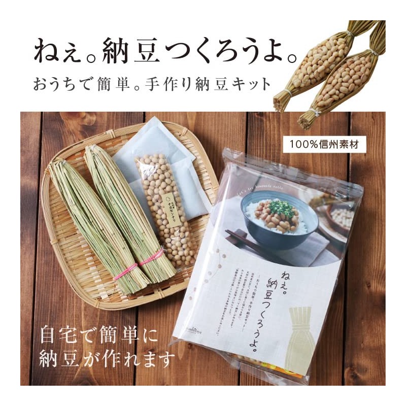 - 【自分で作れるマイ納豆】信州産大豆と、大切に育てられた稲わらを使い、天然の納豆菌で自分だけの「マイ納豆」が作れます。自宅で簡単に作る本物の納豆をお楽しみください。