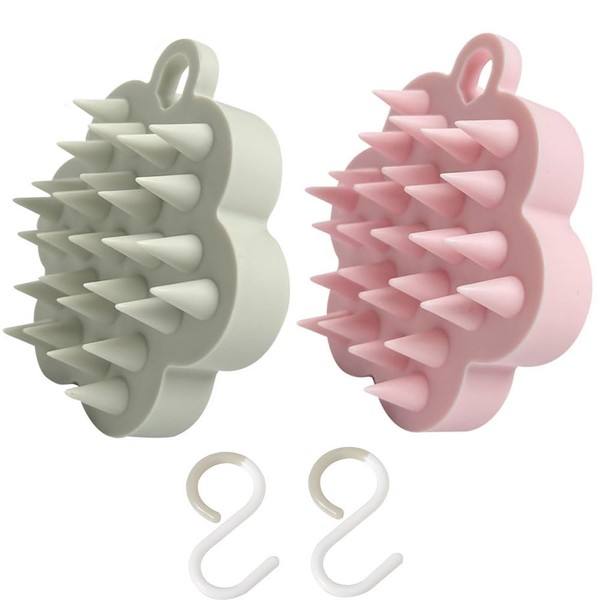 頭皮マッサージ 2個 スカルプブラシ シャンプーブラシ ヘッドマッサージ 頭皮ブラシ (グレイッシュピンク)