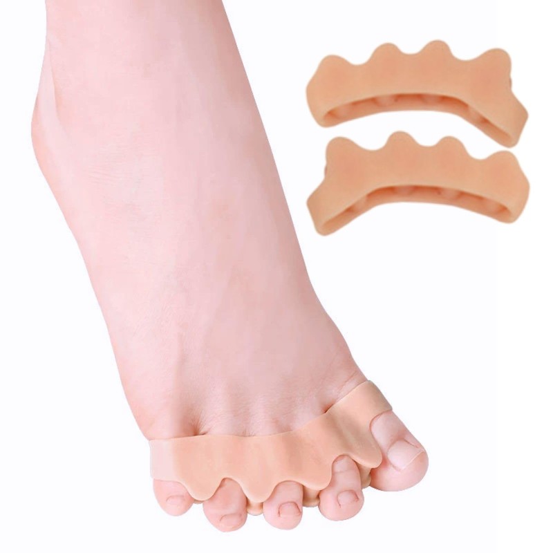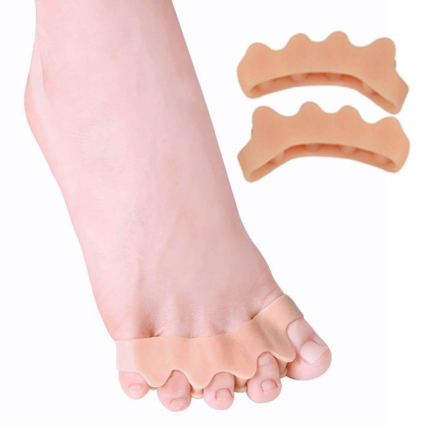 足指開きグッズ|シリコン製足指パッドとサポーター フットケアに最適 水洗い可能 着脱簡単 柔らかい 男女兼用 2個セット (肌)