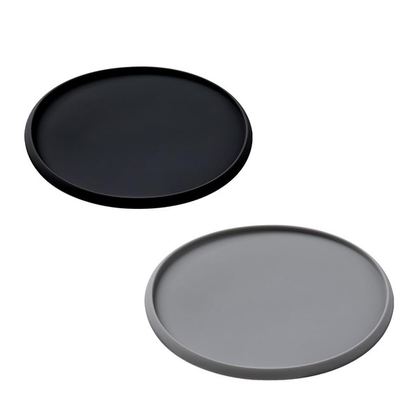 円形コースター2点セットシリカゲルスタイリッシュ耐高温耐寒防水シンプルデザインドリンクコーヒーコースターレストランコーヒー家庭用(ブラックグレー)