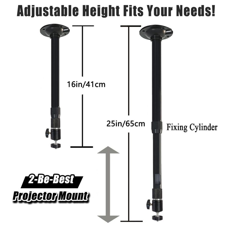 2-Be-Best Projector Mount 360° Rotatable Projector Ceiling Mount Length 16 to 25.6 in / 41 to 65cm Ceiling Projectors Mounts Adjustable Bracket for Mini Projectors Black
