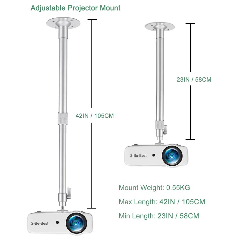 - EXTENDABLE HEIGHT: The projector mount has an longer extending length from 23-42 in / 58-105 CM. Great for high ceiling to mount your projectors. Just adjust and fix a perfect length for your projection.