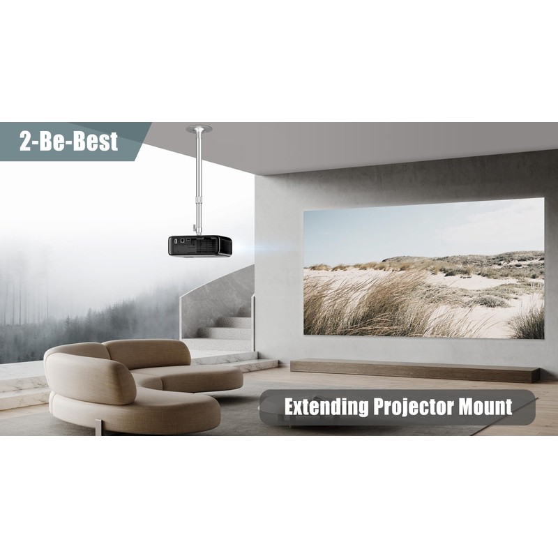 2-Be-Best Upgraded Long Projector Mount, Universal Extendable Projector Ceiling Mount Projectors Wall Mount 23-42 in / 58-105 CM 360° Adjustable Sliver High Profile Projectors Mount Silver High End