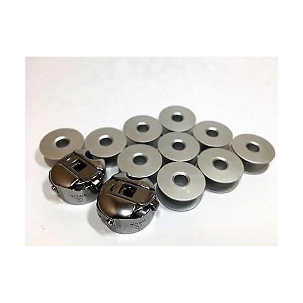 2 BOBBIN CASE(52237) & 10 ALUMINUM BOBBIN FOR JUKI INDUSTRIAL SEWING MACHINE