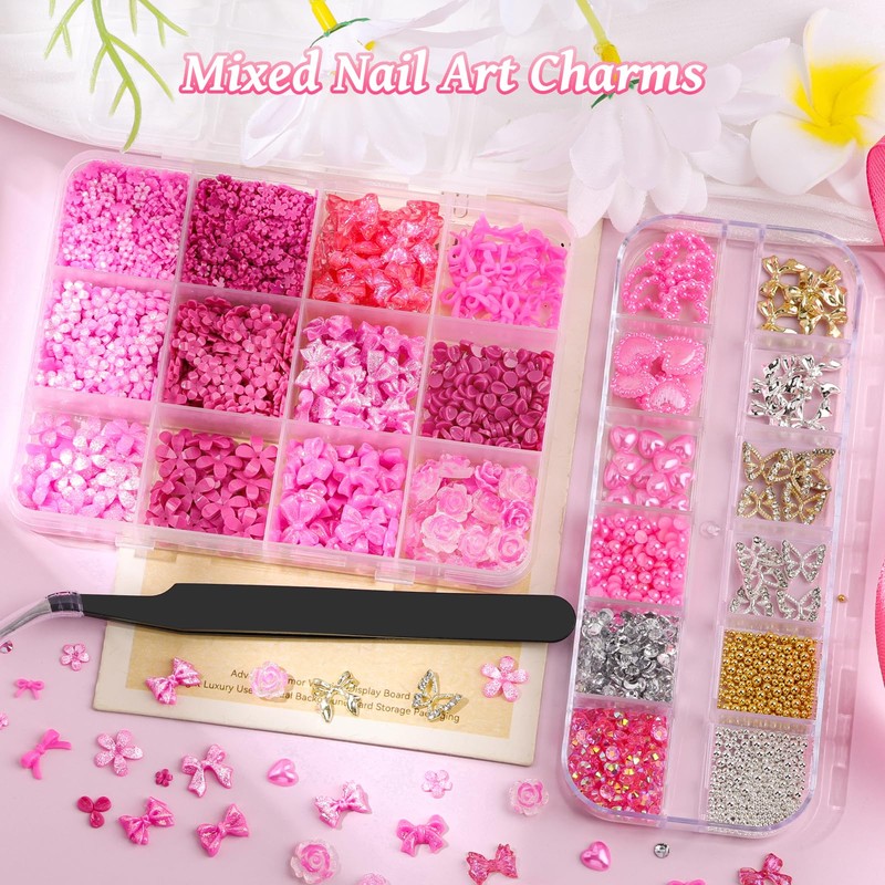 - Package Content:You will get 2 boxes nail art charms accesorries with tweezers.The multi styles nail charms can easily match your style and meet your daily manicure needs.