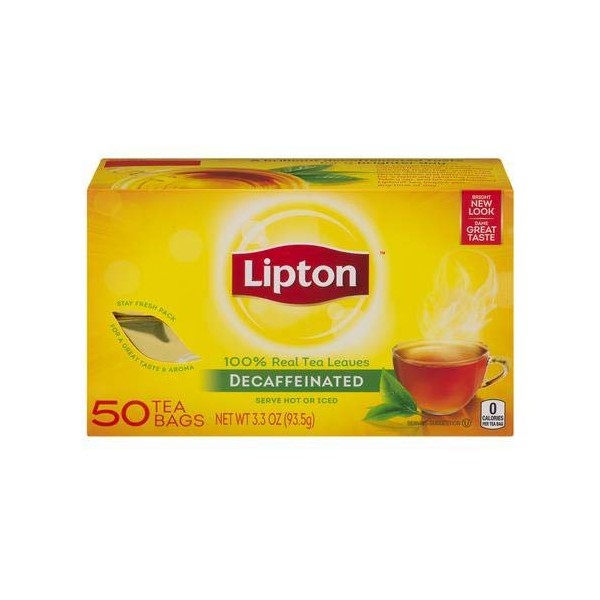 (2 Boxes) Lipton Decaffeinated Black Tea Bags, 50 Ct (Pack of 2)