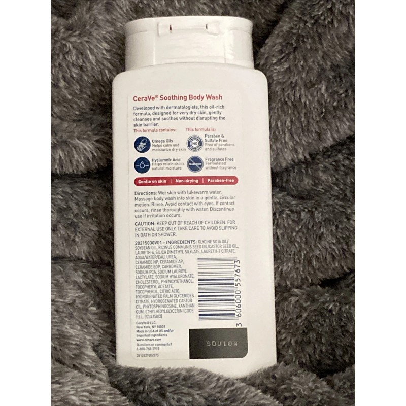 2)CERAVE SOOTHING BODY WASH FOR VERY DRY SKIN 3 ESS CERAMIDES & OMEGA OILS 10 OZ