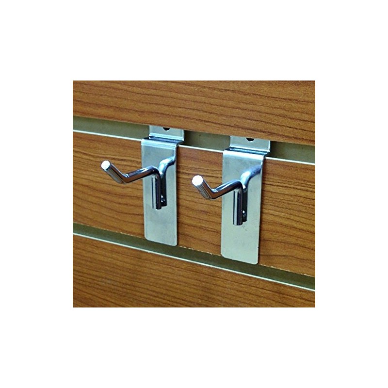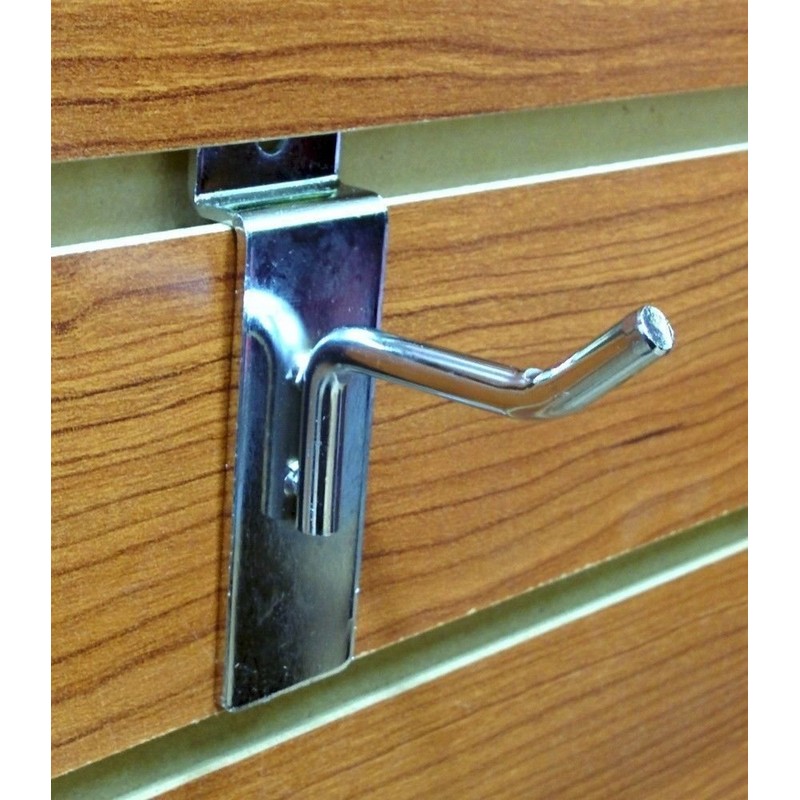- Our slatwall hooks are made out of a heavy duty metal and come in a chrome finish.