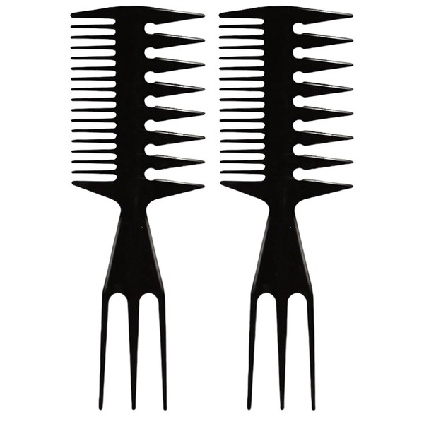 2 Count,Men's Hair Comb, Wide Tooth & Fine Tooth, Black Plastic, Unisex