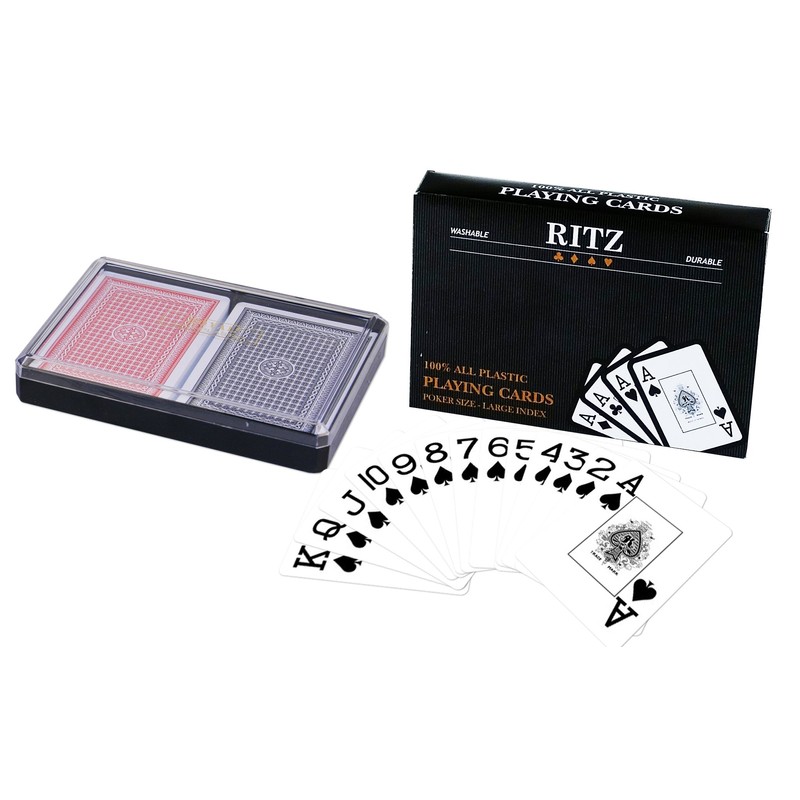 Ritz 2-Decks Poker Size 100% Plastic Playing Cards Set in Plastic Case, Large Index, Waterproof