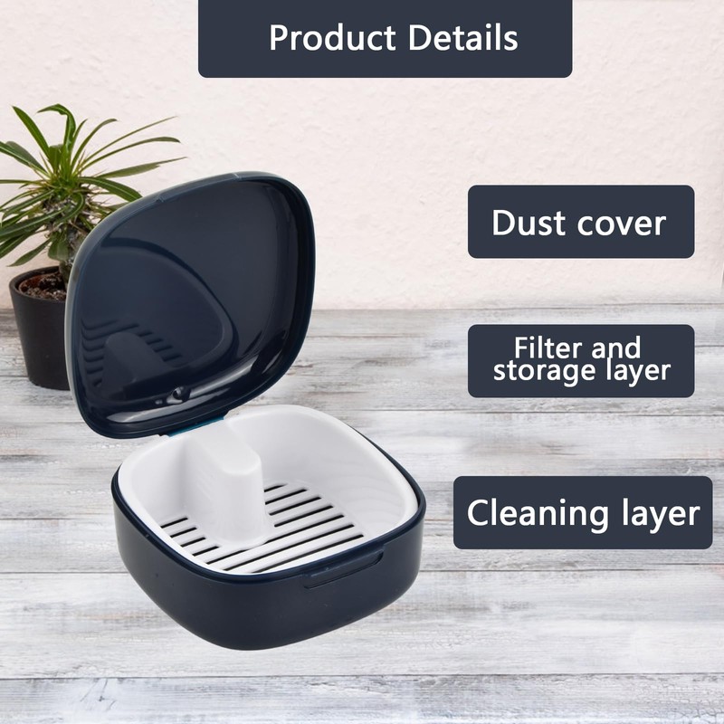 - The denture box with filter is made of high-quality plastic, which is resistant to high temperatures, easy to clean, and can effectively prevent dirt and dust from entering.