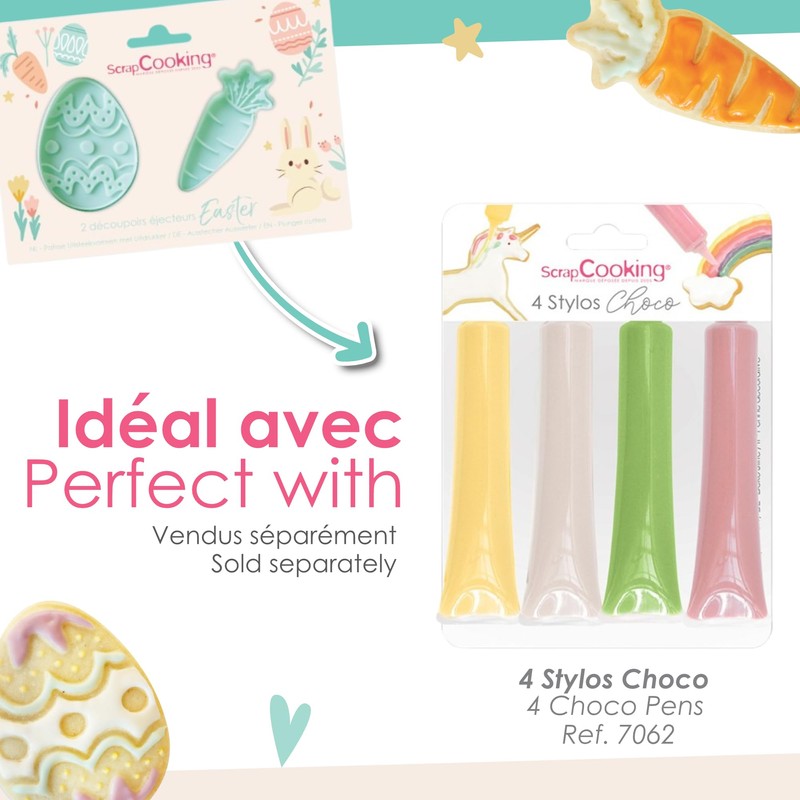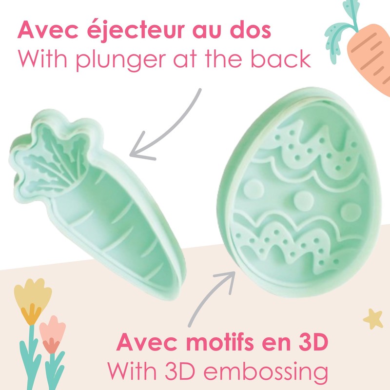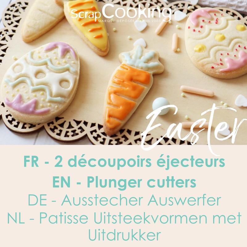 - Make beautiful Easter bakers - Discover our set of 2 Easter cookie cutters. In this set you will find one egg cutter and another in the shape of a carrot