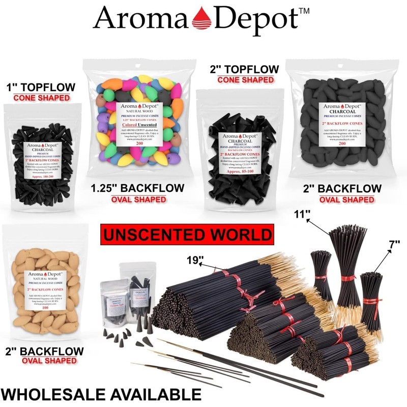 HAND-MADE - Approx. 10 Pack Cones per pack. Hand Dip Our Charcoal Cones Daily Using Alcohol-Free Concentrated Top-Quality Oil Right Here in The U.S.A. These Cones Are Dipped for 72 hours. TURNED OFF? - Keep your incense cone away from drafty areas or open windows. Another reason your incense cone might not stay lit is if it's around too much of a breeze. Light your cone away from windows that are open or other sources of airflow. Check to make sure there isn't an open-air vent near the incense. *Smooth Clean Burn* *No Smokey Wood After Smell* We Also Carry Incense In the Following Fragrances: Baby Powder, Black Coconut, Butt Naked, Cherry, Coco Mango, Dragon Blood, Egyptian Musk, Frank & Myrrh, Frankincense, Jamaican Fruit, Jasmine, Lavender, Mango Butter, Nag Champa, Opium, Patchouli, Pink Sugar, Pussy and 200 other scents.