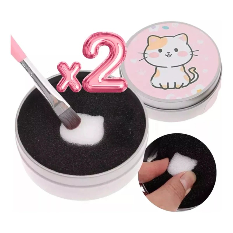 2 Estuche Limpia Brocha Seco Maquillaje Esponja Ecológico F Color Plateado