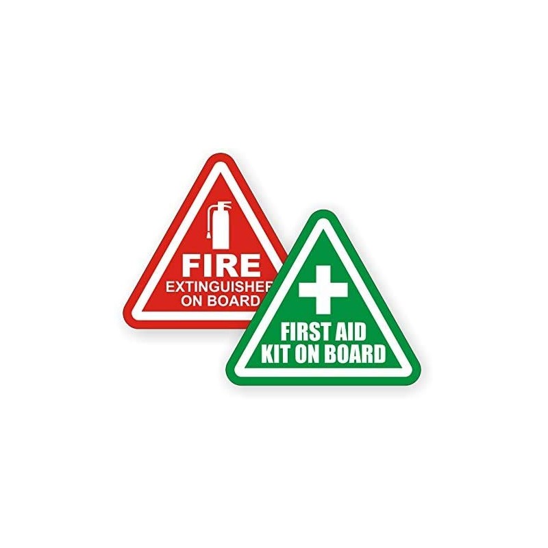 2″ Fire Extinguisher | First Aid Kit on Board Vinyl Decals | Stickers | Labels Pair
