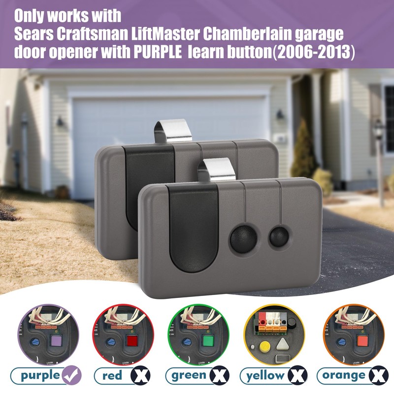 - 【Adaptability】:for Craftsman/LiftMaster/Chamberlain garage door opener manufactured from 2006-2013, Can ONLY work with PURPLE learn button (check the back of your opener). Code type: Security+ 315 MHz, Please refer to the model list on the A+page for the applicable models.