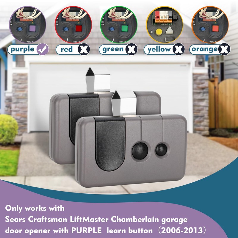 - 【Compatibility】:for Craftsman/LiftMaster/Chamberlain garage door opener manufactured from 2006-2013, Can ONLY work with PURPLE learn button (check the back of your opener). Code type: Security+ 315 MHz, Please refer to the model list on the A+page for the applicable models.