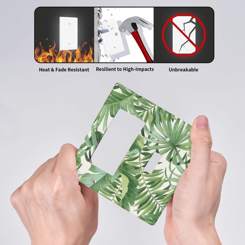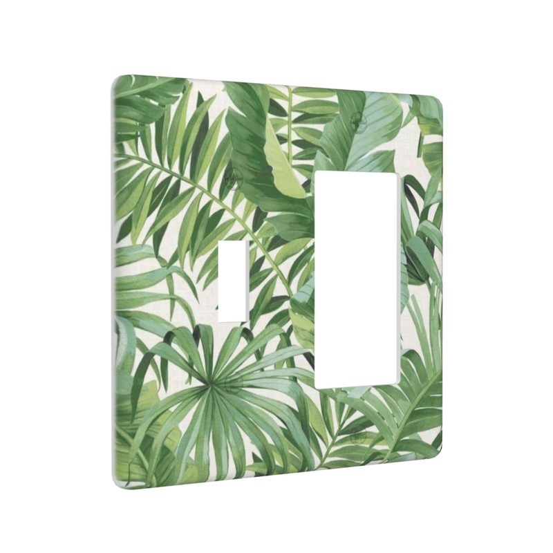 2 Gang Combination 1-Toggle 1-Rocker GFCI/Decorator Outlet Light Switch Cover Green Summer Tropical Forest Banana Palm Tree Leaf Plant Nature Decorative Combo Two Dual Device Receptacle Wall Plate