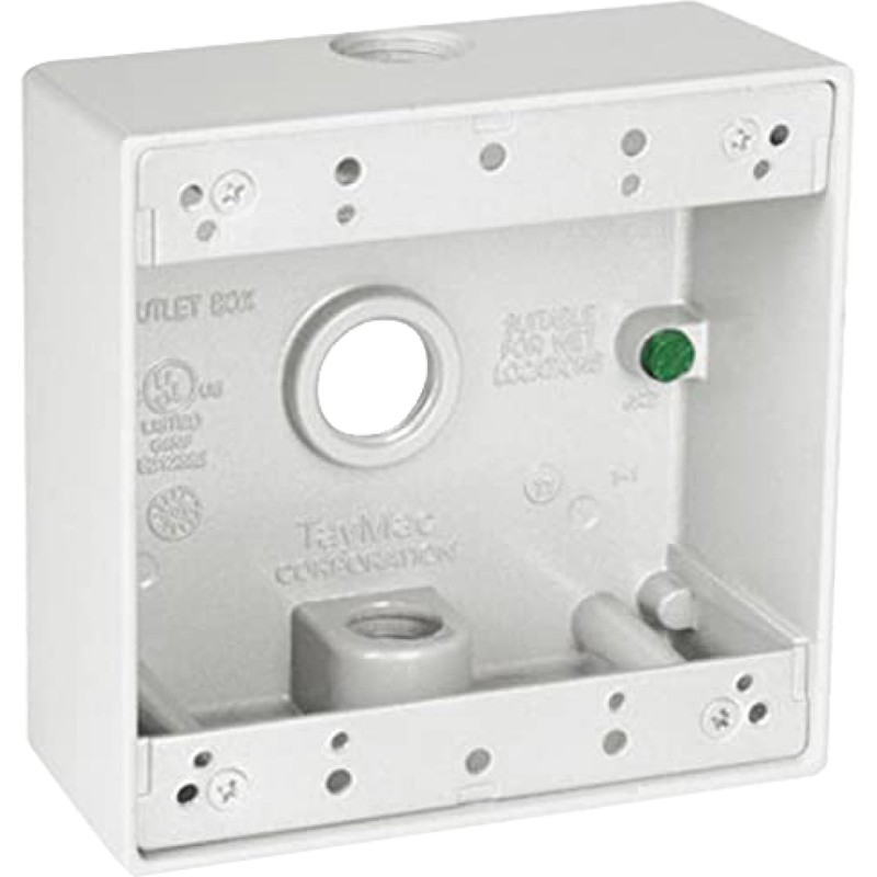 TayMac 4.5 x 4.5 Inch 2-Gang White 2-in. Deep Weatherproof Junction Box with Three .5-inch Threaded Holes DB350WH, Outdoor Electrical Box for Outdoor Outlets or Branch Circuit Wiring