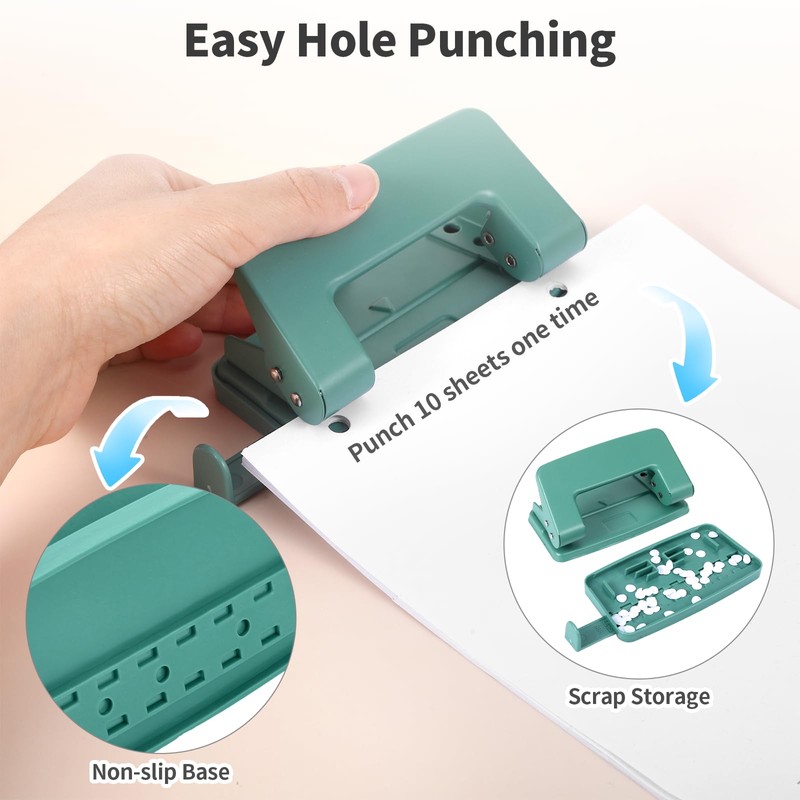 - Easy Hole Pushing: Effortlessly punch through up to 10 sheets of paper, plastic cards, or thin metal sheets with this paper punch. The adjustable hole puncher is perfect for scrapbooking, filing, and creating custom labels, making it a versatile tool for both personal and professional use