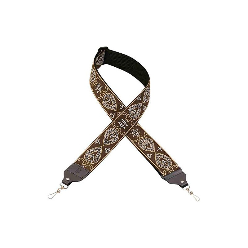2" Hootenanny Jacquard Weave Banjo Strap With Polypropylene Backing, Leather Ends, Metal Truss Rod Clips, And Tri-glide Adjustment. Adjustable To 60".