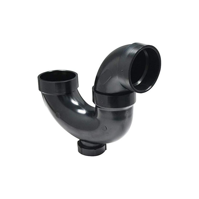 Installed in a ABS DWV pipe system beneath a bathroom sink tail piece. The U-bend is connected to the sink tail piece using a trap adapter sized to match the tail pipe. The 90 degree part of the assembly is then cemented to the U-bend and directed toward the rest of the ABS DWV drainage line.