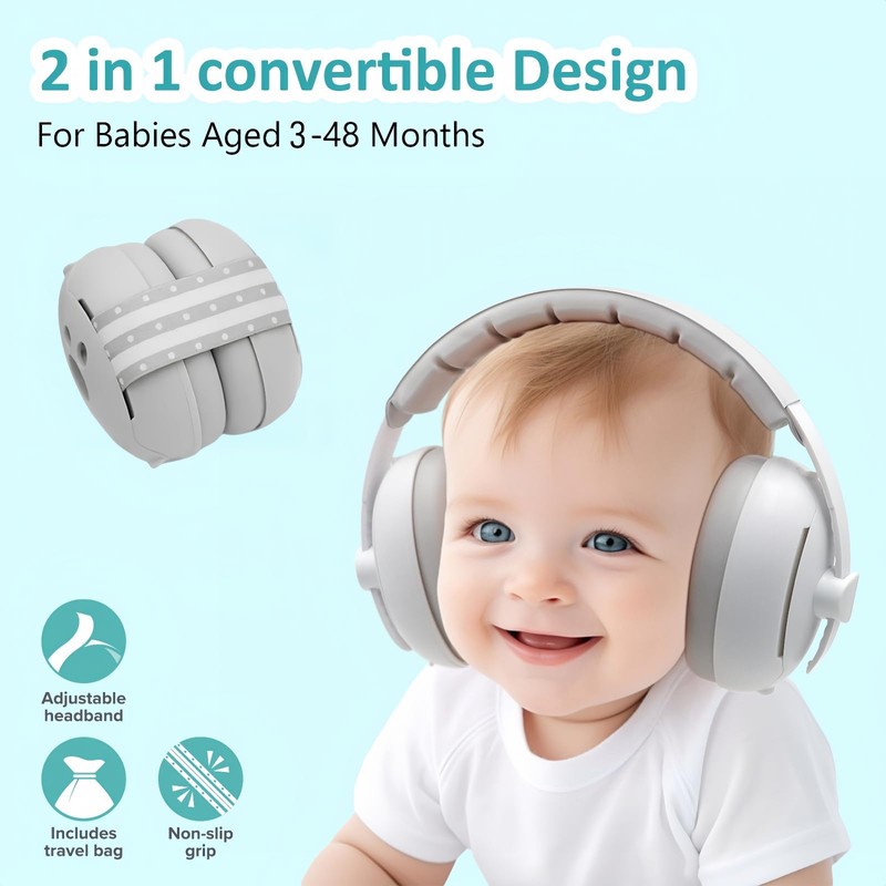 - 2-in-1 Design : this baby headphones for noise boast a versatile 2-in-1 design, suitable for infants aged 3 to 48 months. Featuring a three-position adjustable anti-slip elastic headbands and traditional headphones, both are ultra-lightweight and adjustable, support sleeping and activity according to the baby's needs and preferences,The adjustable band ensures a secure fit on our baby's head, allowing room for growth and ensuring continued use as he/she gets older