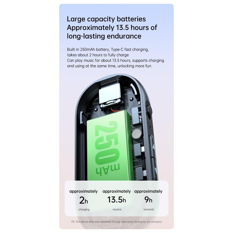 - The Bluetooth transmitter provides up to 13.5 hours of use on a full charge, with a connection range of over 10 metres and a fast 2-hour charging time.