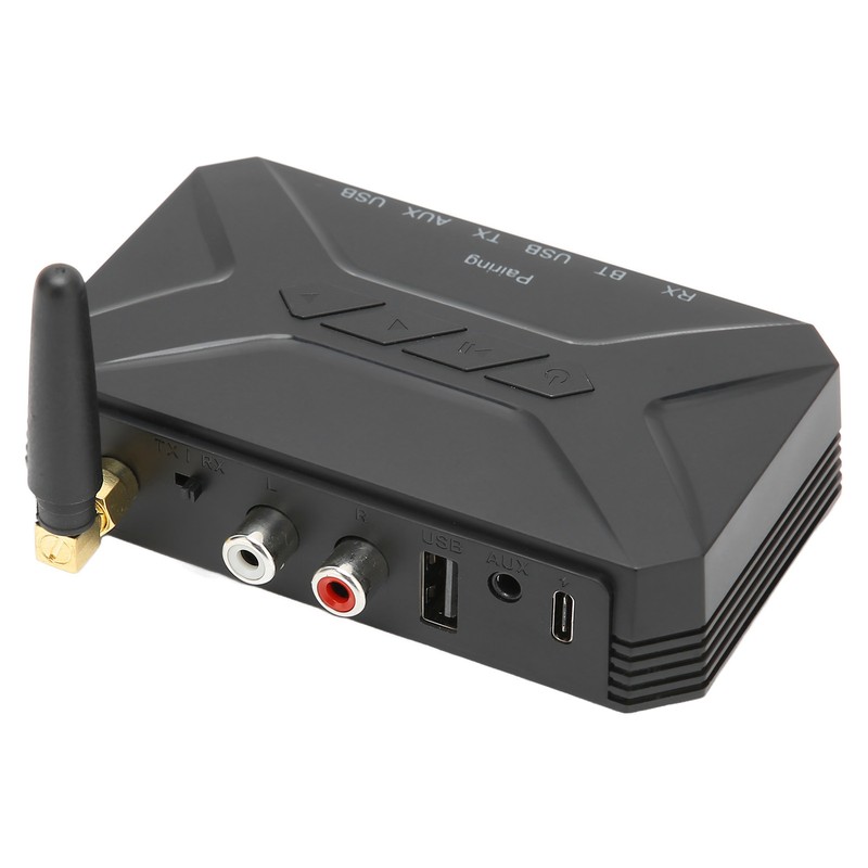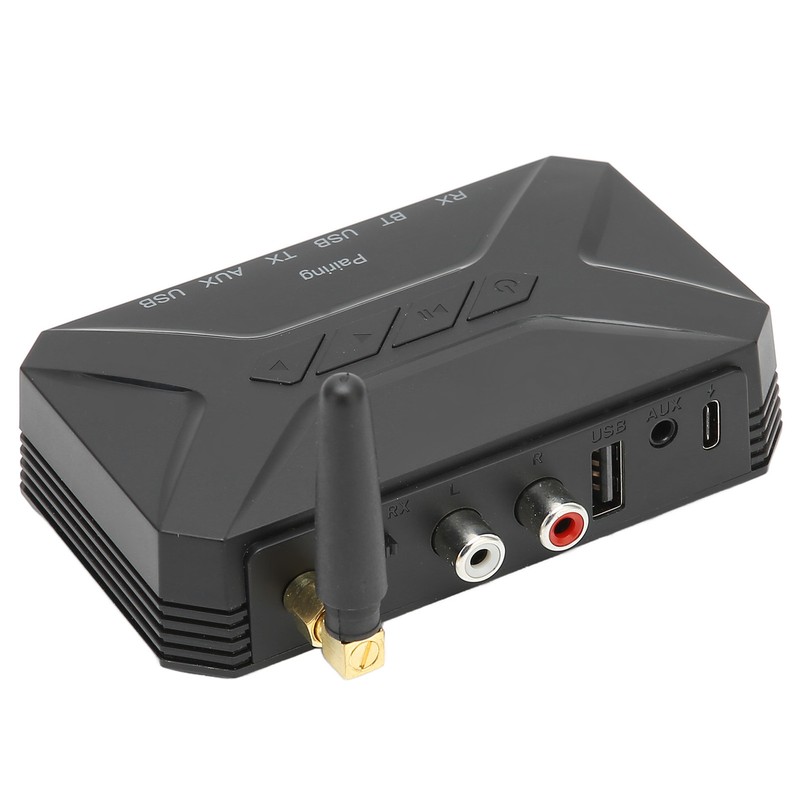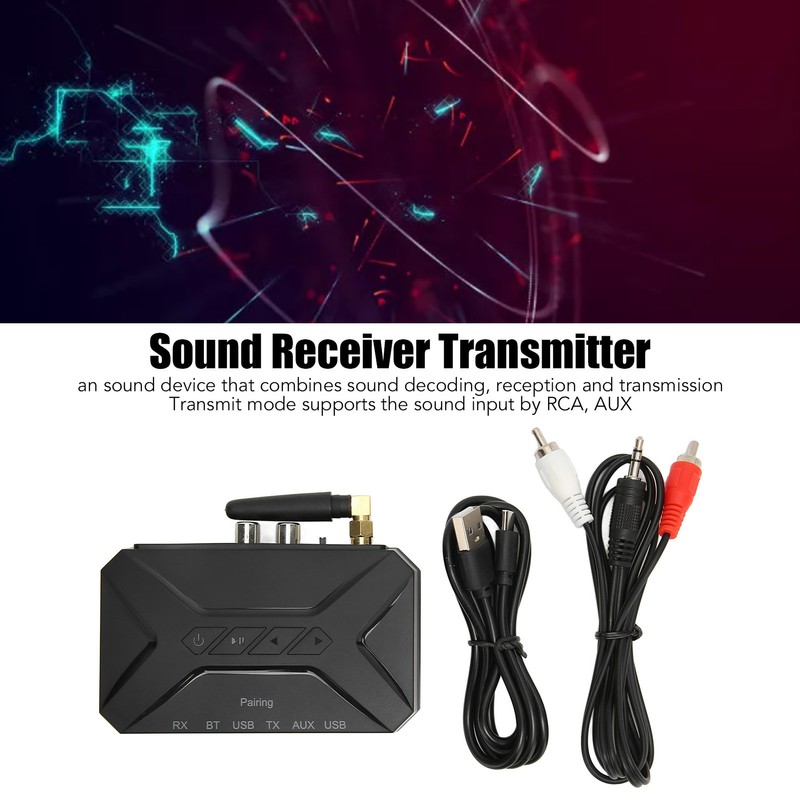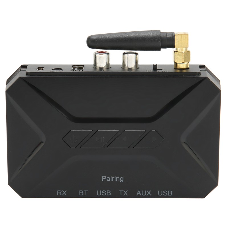 1、Multi Functional: This Bluetooth sound receiver transmitter is an sound device that combines sound decoding, Bluetooth reception and Bluetooth transmission with an effective range of approximately 50 meters. 2、Bluetooth 5.0: The Bluetooth transmitter receiver allows you to transfer all your favorite music from any phone, tablet, laptop or desktop to your sound system using Bluetooth 5.0 technology. 3、Receiver Mode: Receiver mode supports accepting Bluetooth sound signals and outputting sound from RCA and AUX; it supports playing sound files from USB flash drive and outputting sound from RCA and AUX. 4、Transmit Mode: Transmit mode supports the sound input by RCA, AUX, wirelessly transmitted to Bluetooth headphones, Bluetooth stereo and other devices via Bluetooth. 5、Sound Decoding: Bluetooth adapter supports decoding and wirelessly transmitting sound files from U disk to Bluetooth headphones or Bluetooth stereo and other devices via Bluetooth.