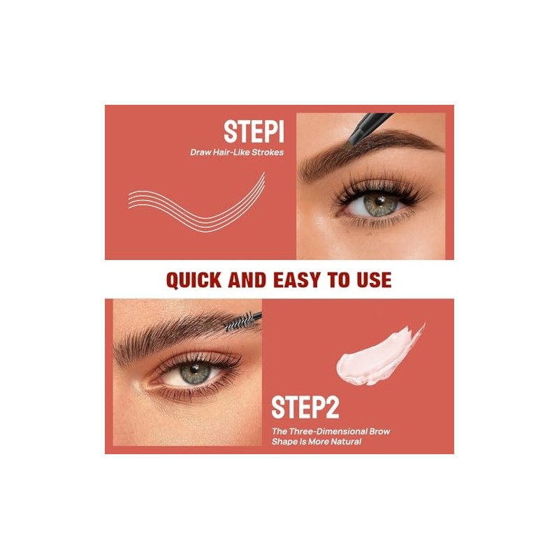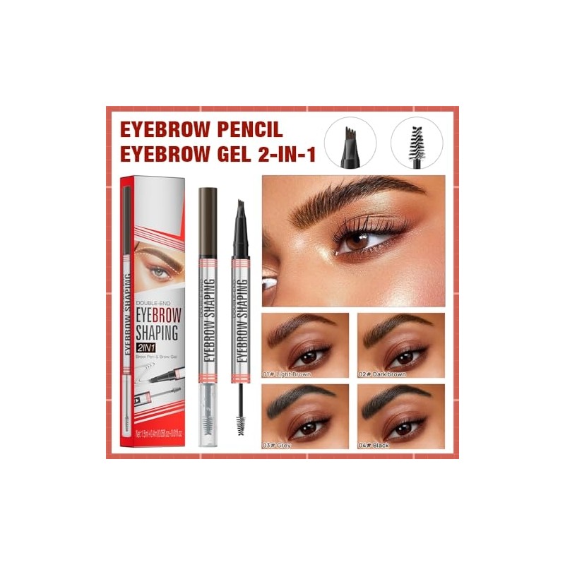 2 In 1 Brow Pen and Sealing Brow Pencil, 2025 New Magical Waterproof Brow Pencil, Dual-Ended 3D Waterproof Microblading Eyebrow Pen, 4 Tipped Brown Pencil with Brow Brush 2 In 1 Brows (Dark Brown*1)