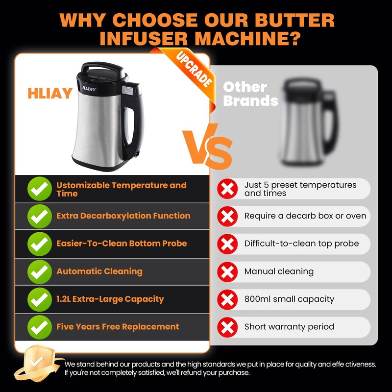 - Ustomizable Temperature and Time: Other brands' butter machines only have five preset temperatures and times, Our butter Infuser machine features any adjustable temperature (Temperature Range: from 32F ° to 250F °) and adjustable time (Time Range: from 30 minutes to 12 hours), This will meet your unlimited needs for infusion!