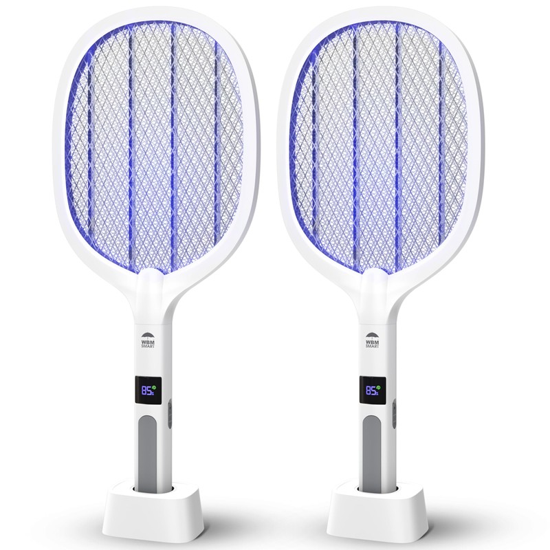 WBM SMART 2 in 1 Electric Bug Zapper, Mosquitoes Trap Lamp & Racket, USB Rechargeable Electric Fly Swatter for Home and Outdoor Powerful Grid 3-Layer Safety Mesh Safe to Touch, Pack of 2