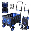 2-in-1 Folding Hand Truck & Dolly with Collapsible Basket - 330lbs Capacity Heavy Duty, 4 Non-Marking Wheels, Retractable Handle for Moving, Warehouse, Shopping Blue
