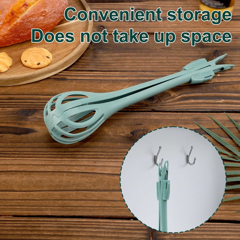 2 in 1 Food Clip & Egg Whisk, Multifunctional Egg Beater Manual Mixer and Serrated Tongs Practical Kitchen Gadget Tool for Gripping Stirring Mixing Ideal for Bread Pasta Salad (Green)