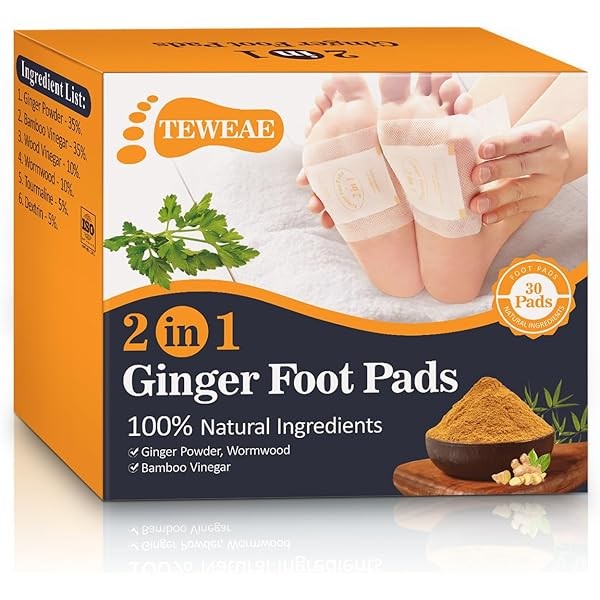 2 in 1 Foot Pads, 30 Pads Ginger Bamboo Wormwood Foot Pads, Tear and Use, with Pure Natural Ginger Powder Bamboo Vinegar Wormwood, Bigger Adhesive ''Stay in Place'' All Night Pads