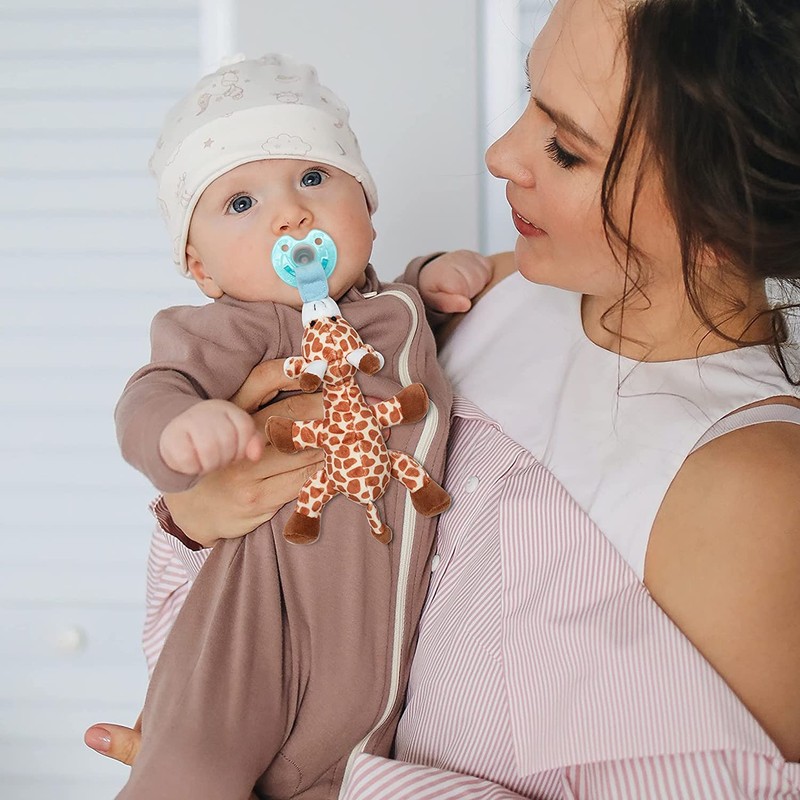 2-in-1 Giraffe Stuffed Animal Pacifier for Babies, Cute and Cuddly Plush Toy with Silicone Teether, Supports Girls and Boys Ages 0+ Months, Portable and Travel Friendly