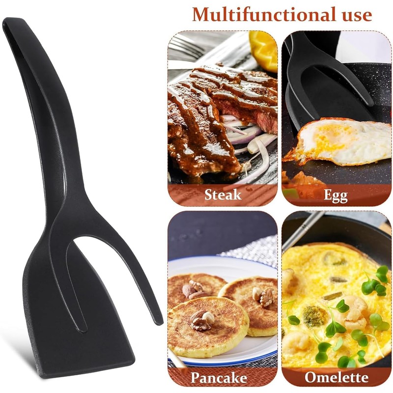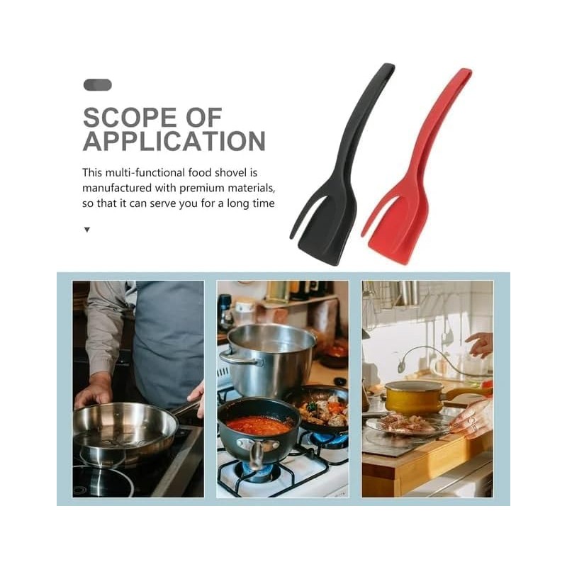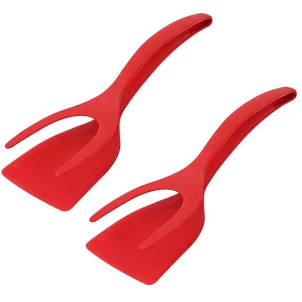 2 in 1 Grip and Flip Spatula Tongs, Egg Flipper Tong, Non-Stick Egg Turners, Pancake Fish French Toast Omelet Making Home Kitchen Cooking Tools (Red 2pcs)