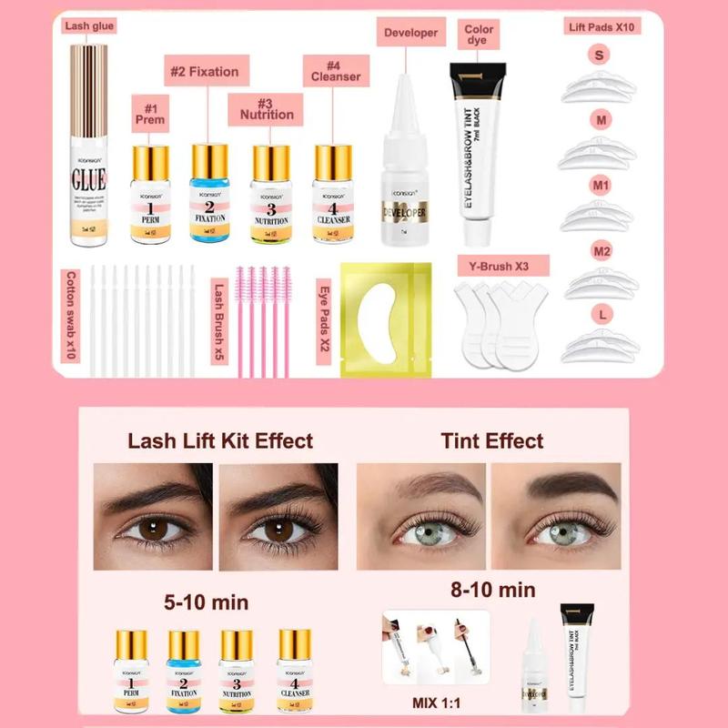 2 in 1 Lash & Brow Lift Kit, 1 Set Professional Eyelash & Eyebrow Perm Kit, Quick Lifting Perming & Coloring Kit with Complete Tools - Color: COFFEE, Specification: one-size