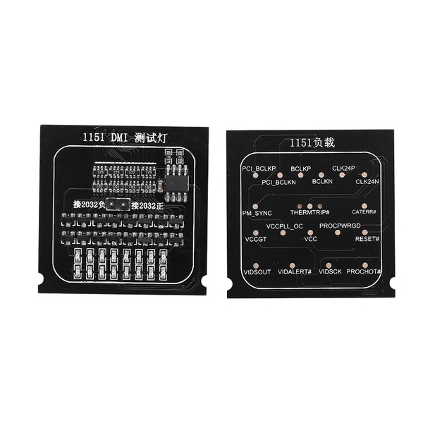 1. Put 1151 test indicator in 1151 CPU slot and press down the CPU cover plate (note that this time it can't electricity), with 2023 3V battery against the test lamp row needles, all DMI signal lamp will light up. If the light is off, says there are a short circuit. You can shake CPU compression bar, using a multimeter to make a further determination.
