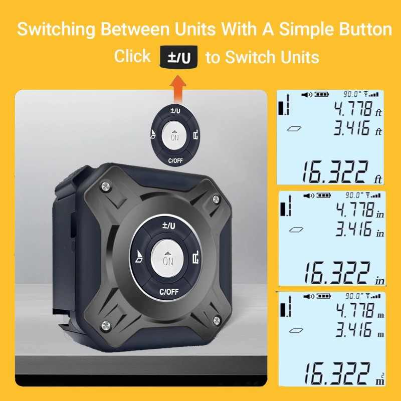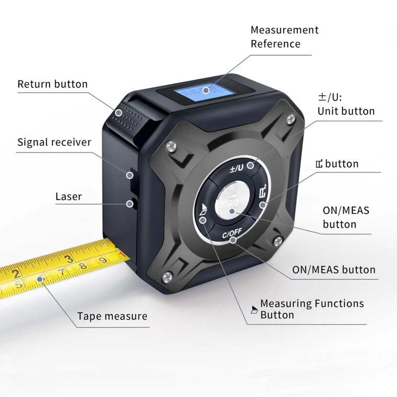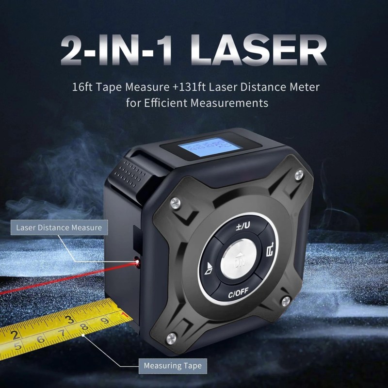 2-in-1 Measuring Tool Laser Distance Meter 131Ft Laser Measure 16Ft Tape Measure