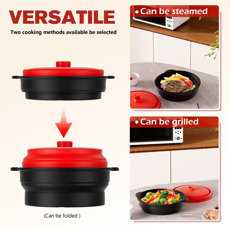 - 【Foldable design 】 Both the lid and the pot body are designed to be foldable, which is convenient for storage, occupies a small area, and is convenient and practical to take with you.In addition, you can use it as a regular food preparation container, and if pressed, it can be used as a plate