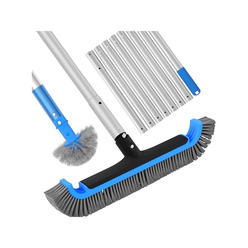 2 in 1 Multifunctional Pool Brush with 10 FT Poles - 17.5'' Heavy Duty Swimming Pool Brush & Multifunctional Brush Head, 10 FT Aluminum Poles, Cleaning Inground & Above Ground Pools, Vinyl Liner