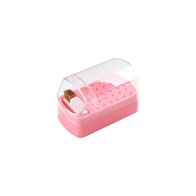 2 in 1 Nail Drill Organizer with Cleaning Brush, 30 Holes Dustproof Storage Box, Pink