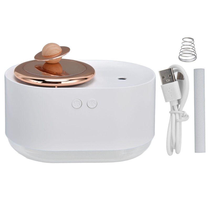 2 in 1 Rotating Planet Humidifier USB Charging Cordless Mute Spray Humidification for Home 1200MAHWhite
