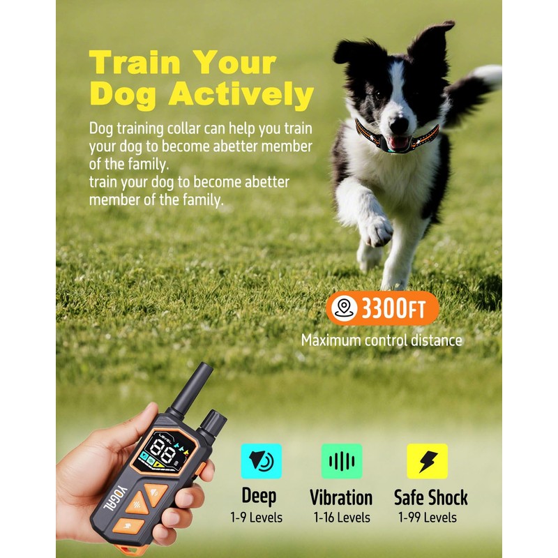 - 【2-in-1 & 3-Channel Design】YOGAL electronic training collar with remote can work independently even without a remote control. It's not just a command receiver, but also a smart anti-barking device that automatically responds to your dog's voice. You don't have to choose between a dog shock collar and a dog bark collar - ours combines both functions. The remote control supports 3 channels, allowing you to control up to 3 dogs.