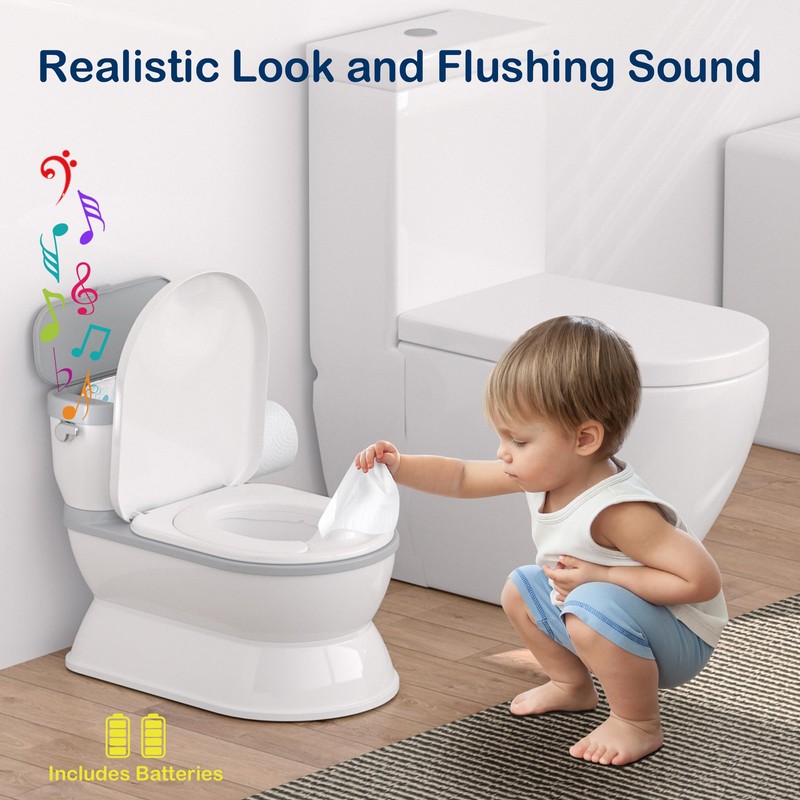 CheerTry 2-in-1 Toddler Potty Training Toilet - Larger Potty Chair & Detachable Training Seat for Boys & Girls Ages 1-3 with Flushing Sound, Wipes Storage, Toilet Paper Holder - Grey