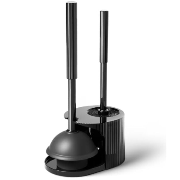 - 2-IN-1 DESIGN: Space-saving bathroom cleaning set combines a toilet plunger and brush in one convenient storage base for organized, compact storage