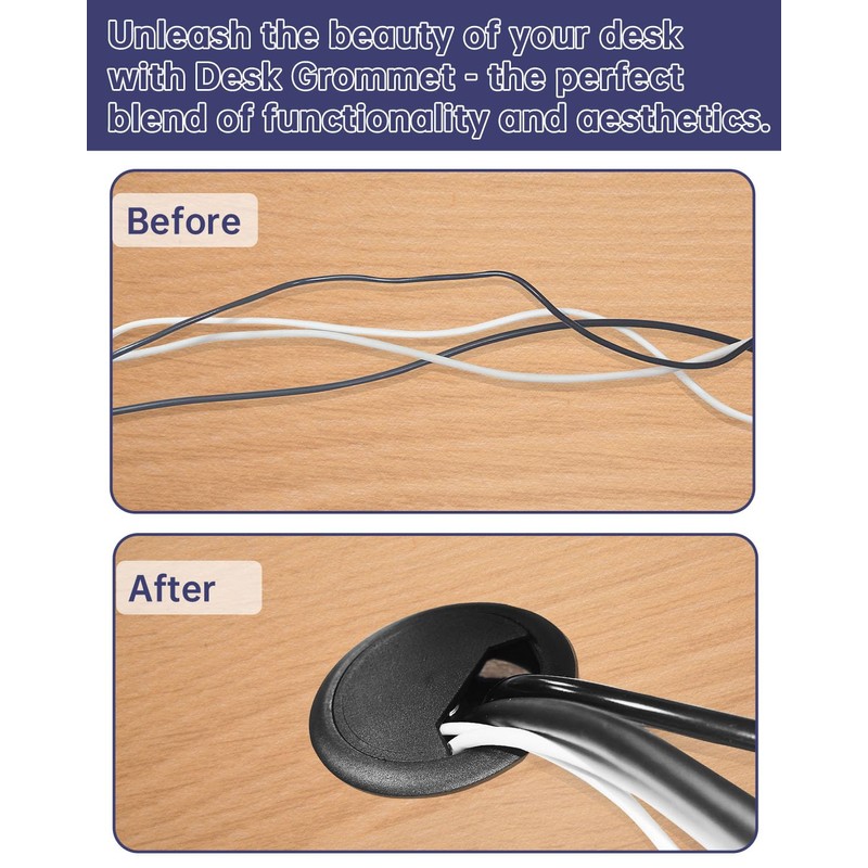 - Easy Installation: After drilling,place the main body of the grommet directly into the hole,it can hide all the cables and wires.